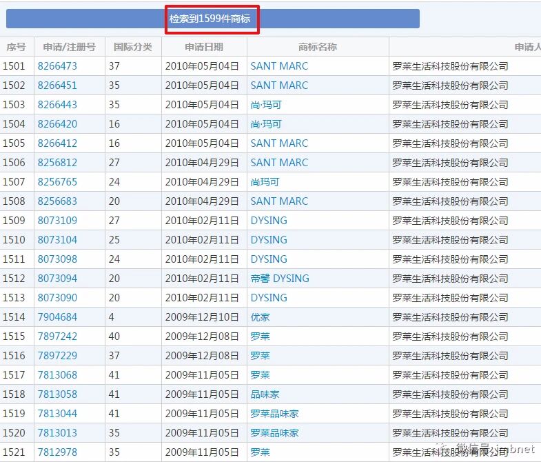 近年来,涉及“罗莱蔓”“金誉罗莱”“岂爱罗莱”等标识的商标侵权纠纷层出不穷,罗莱公司在商标布局方面投入了大量的财力和物力,目前可查询到罗莱生活科技股份有限公司名下共申请注册了1599件商标。